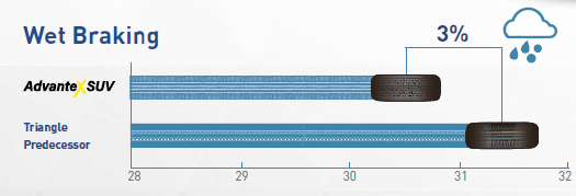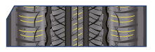 Zwiększa liczbę krawędzi chwytnych i dyspersję wody, co skutkuje lepszą odpornością na zużycie, komfortem oraz dobrym zachowaniem na mokrej nawierzchni i w lekkim śniegu.