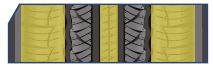 Redukuje odkształcenia karkasu i zwiększa wytrzymałość ściany bocznej, co poprawia trwałość i stabilność jazdy.