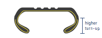 Wzmocniona konstrukcja karkasu z wysokim wywinięciem osnowy (tzw. high turn-up).